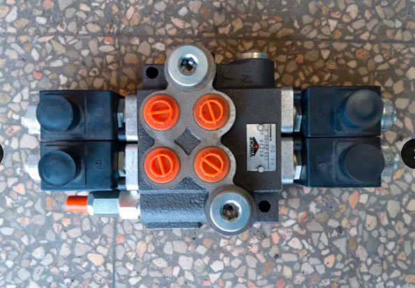 Distribuidores hidráulicos de accionamiento eléctrico a 12 voltios, también incorpora palancas manuales.